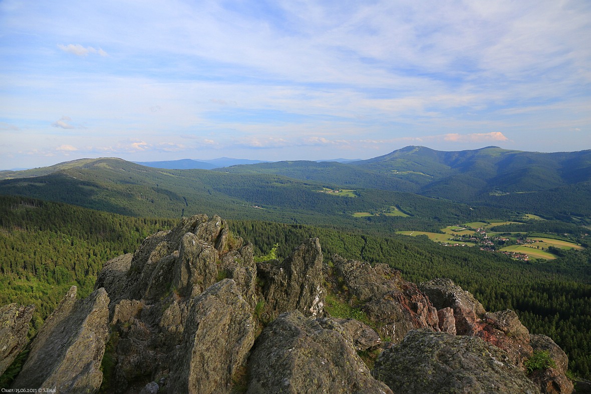 Blick vom Kleinen Osser zum Zwercheck, Falkenstein, Rachel und zum Großen und Kleinen Arber