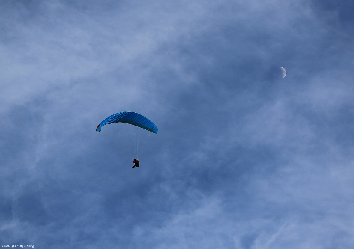 Gleitschirmflieger und Mond heute Abend am Kleinen Osser