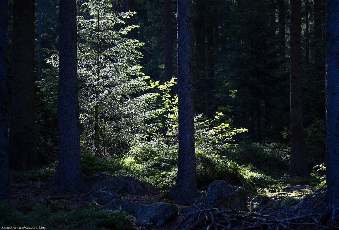 Abendliches Licht im Wald zwischen Arbersee und Mooshütte