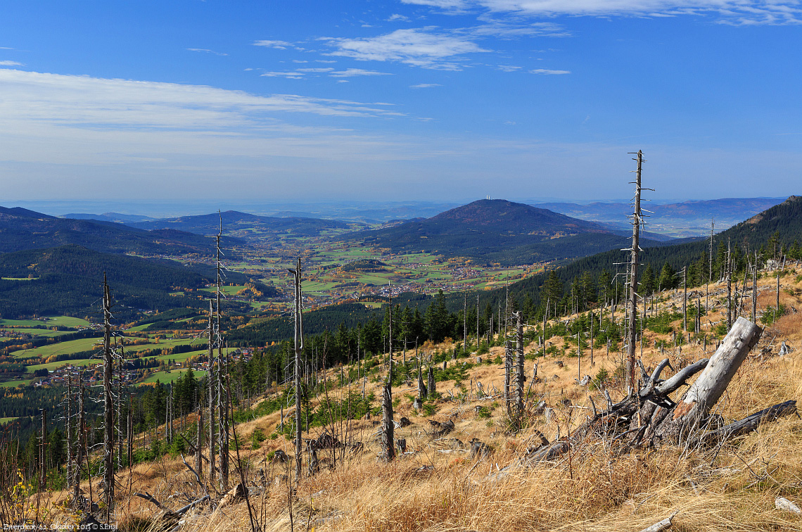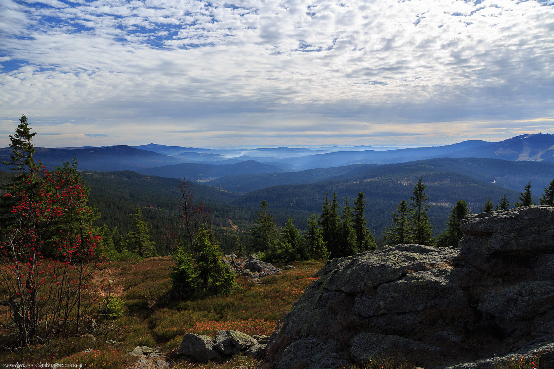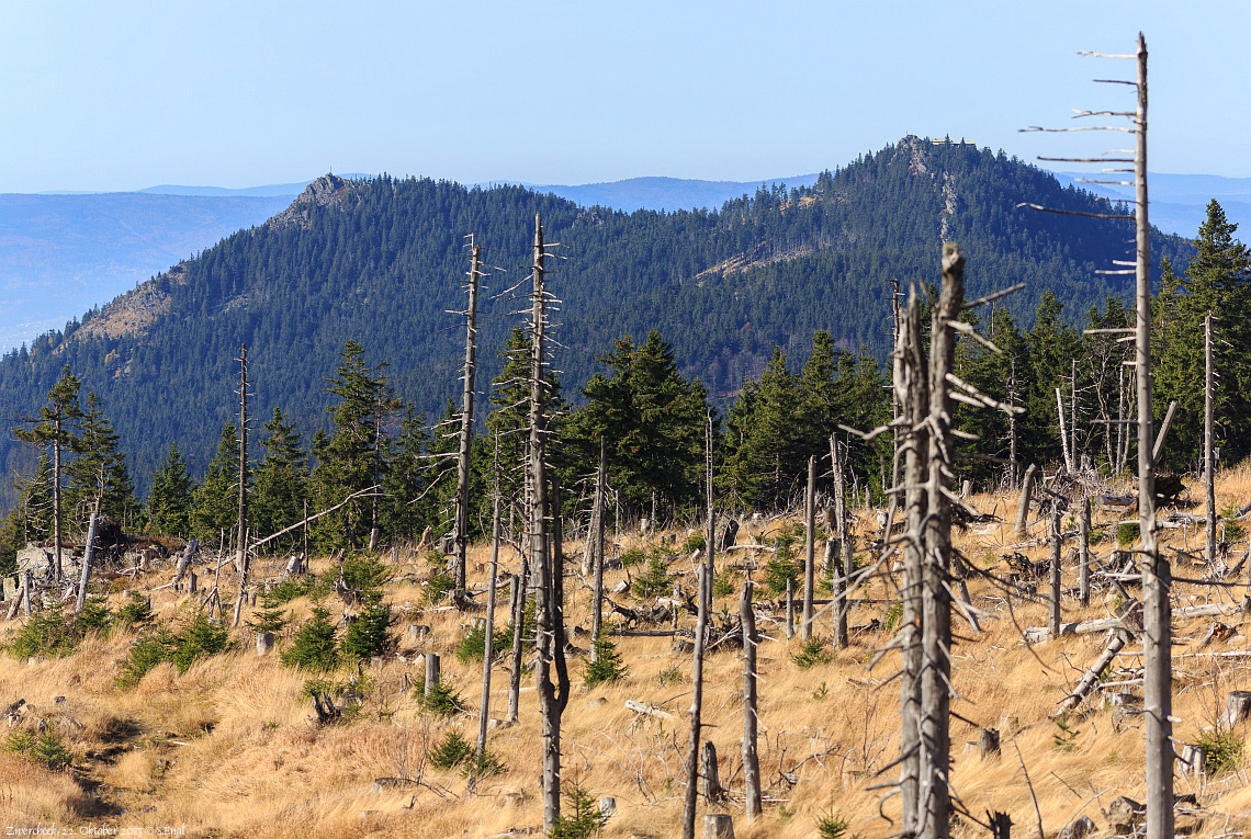 Heute wollte ich die gute Fernsicht nutzen und machte mich am Vormittag auf den Weg Richtung Zwercheck in der Gemeinde Lohberg. Das Zwercheck ist mit 1.333m einer der höheren Gipfel im Bayerischen Wald und liegt im so genannten Kühnischen Gebirge. Direkt auf dem Bergkamm des Zwercheck verläuft auch die Grenze zwischen Tschechien und Deutschland.