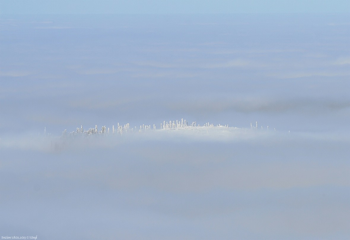 nur ganz knapp über der Hochnebeldecke lag. Teilweise ragten nur die Bäume aus dem Hochnebel heraus