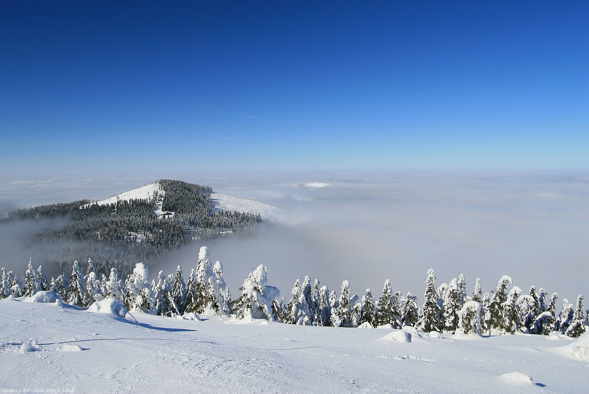 Blick vom Arbergipfel (1.456m) zum Kleinen Arber (1.384m)